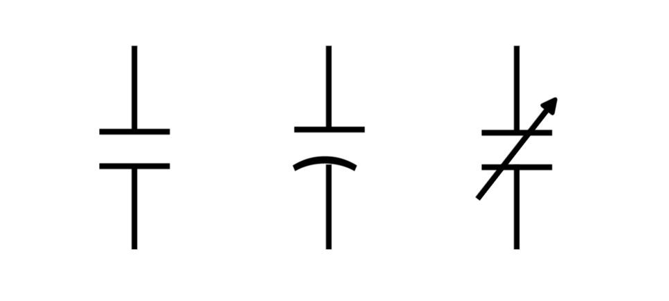 가장 우측에 보이는 화살표가 그려진 콘덴서 기호는 가변 커패시터를 나타내는 기호에요.